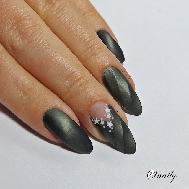 Mani samo w sobie już bardzo bogate, wykończyłam delikatnymi naklejkami 3D - gwiazdkami, które oczywiście po niedługim czasie zaczęły brzydko odstawać.